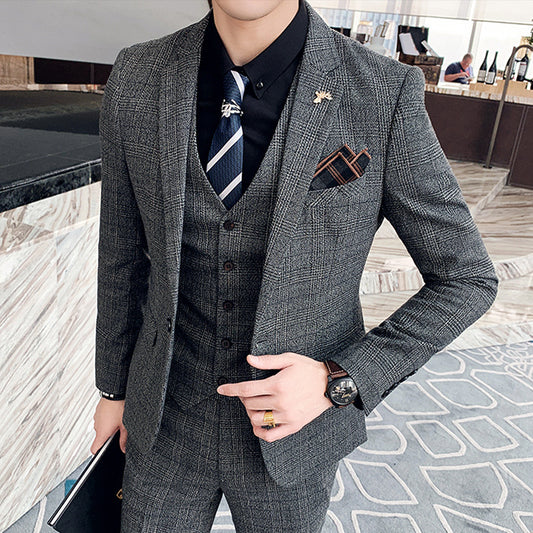 VENTE FLASHCostume 3 Pièces Bleu Carreau Chic
